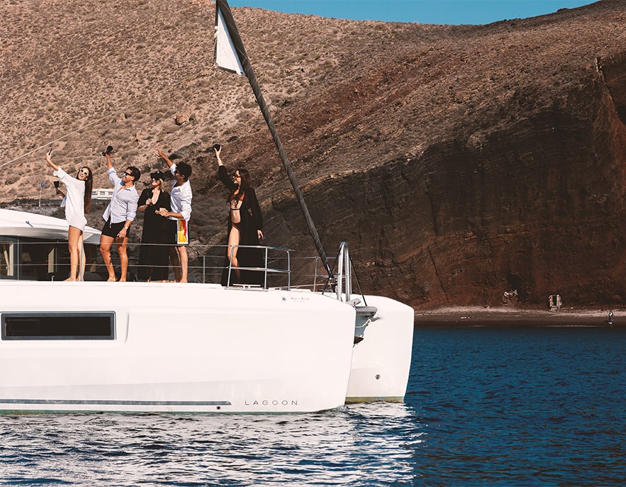 Experience the ultimate Santorini sunset in a setting of pure luxury. As the golden light reflects off the water, savor exquisite dining and fine wines, served as you glide through Santorini’s most breathtaking landscapes. A moment designed for romance, celebration, and unforgettable memories.